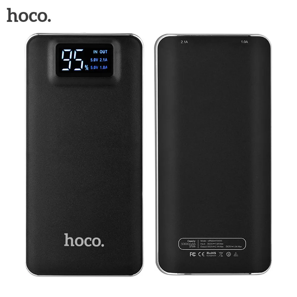 Kopen Goedkoop HOCO Power Bank 10000 mah Grote Capaciteit Ultra dunne Mobiele Powerbank Fast Charger Met LED Zaklamp Externe Batterij LCD Prijs