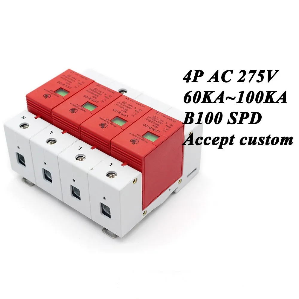 Beste Koop B100 4P 60KA ~ 100KA ~ 275 V AC 3 P + N SPD Huis Overspanningsbeveiliging Beschermende Lage spanning afleider Apparaat bliksembeveiliging Goedkoop