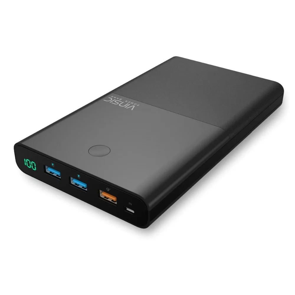 Beste Koop Vinsic 28000 mAh Quick Charge Power Bank 5 V 9 V 12 V Smart QC 3.0 2 USB poorten 18650 Lithium Externe Batterij voor Samsung iPhone Goedkoop