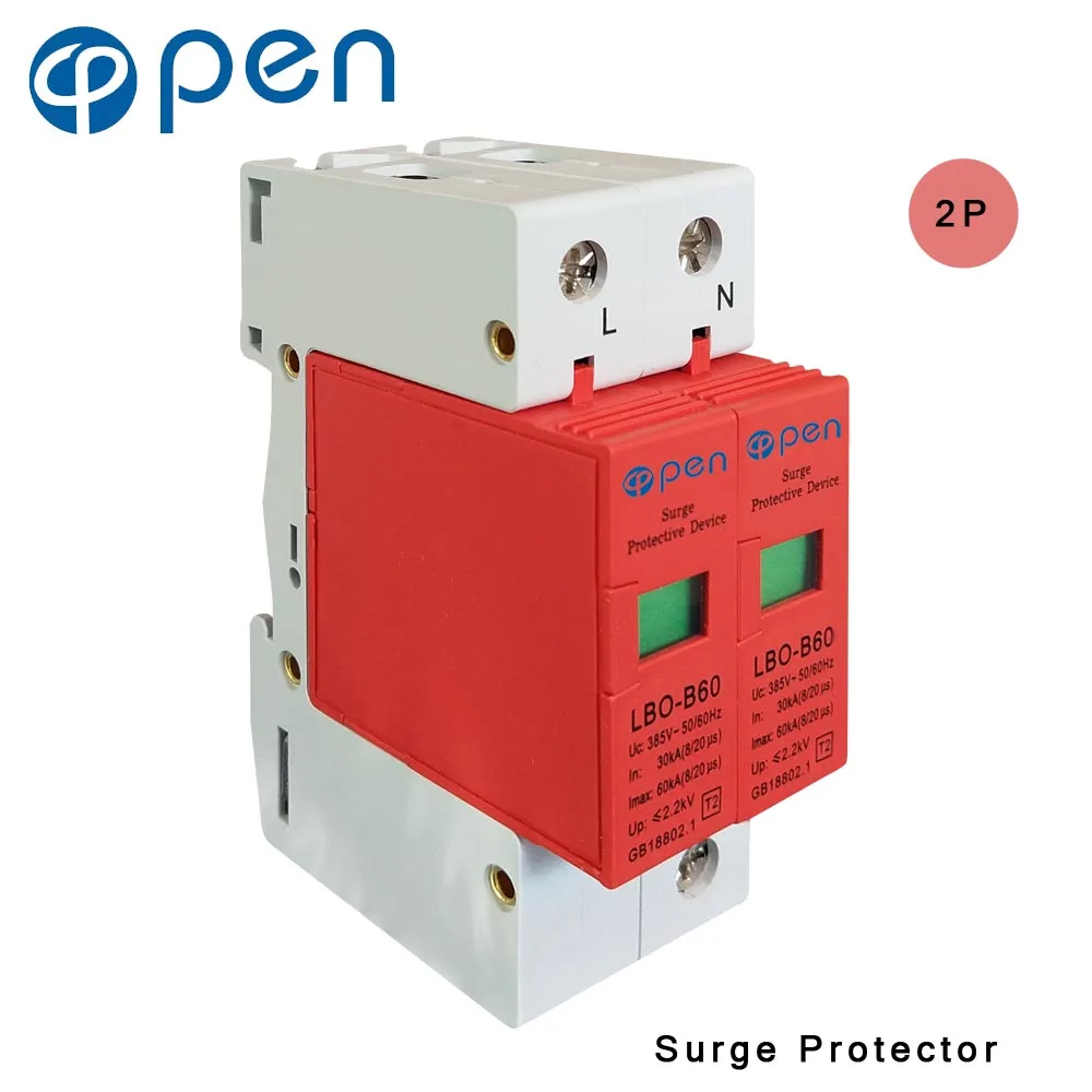 . Goede Kopen OPEN LBO B60 Serie Huishoudelijke SPD Overspanningsbeveiliging 1 P + N 30kA 60kA 380VAC Laagspanning Afleider Apparaat Rode Goedkoop.