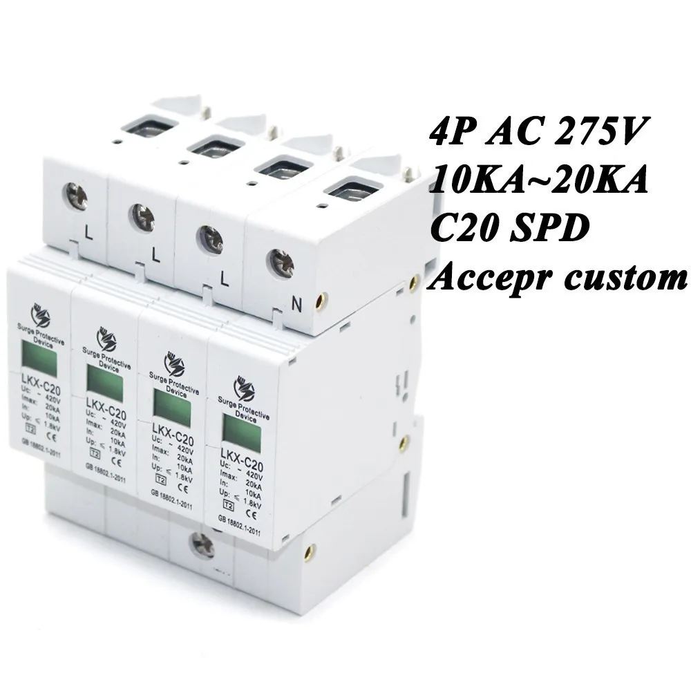 Beste Kopen Hot Koop C20 4P 10KA ~ 20KA 275 V AC SPD Huis Overspanningsbeveiliging Beschermende Lage Voltage Afleider Apparaat 3 P + N Bliksembeveiliging Goedkoop