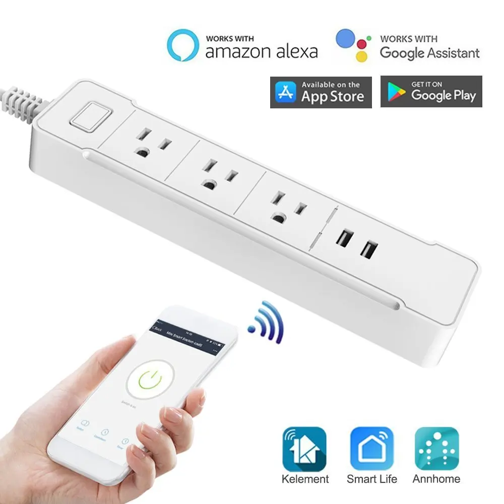 Kopen Goedkoop WiFi Smart Power Strip Surge Protector, 3 AC Outlets Plug, 2 USB Opladen Poorten met Alexa Google Assistent Remote Voice Control Online