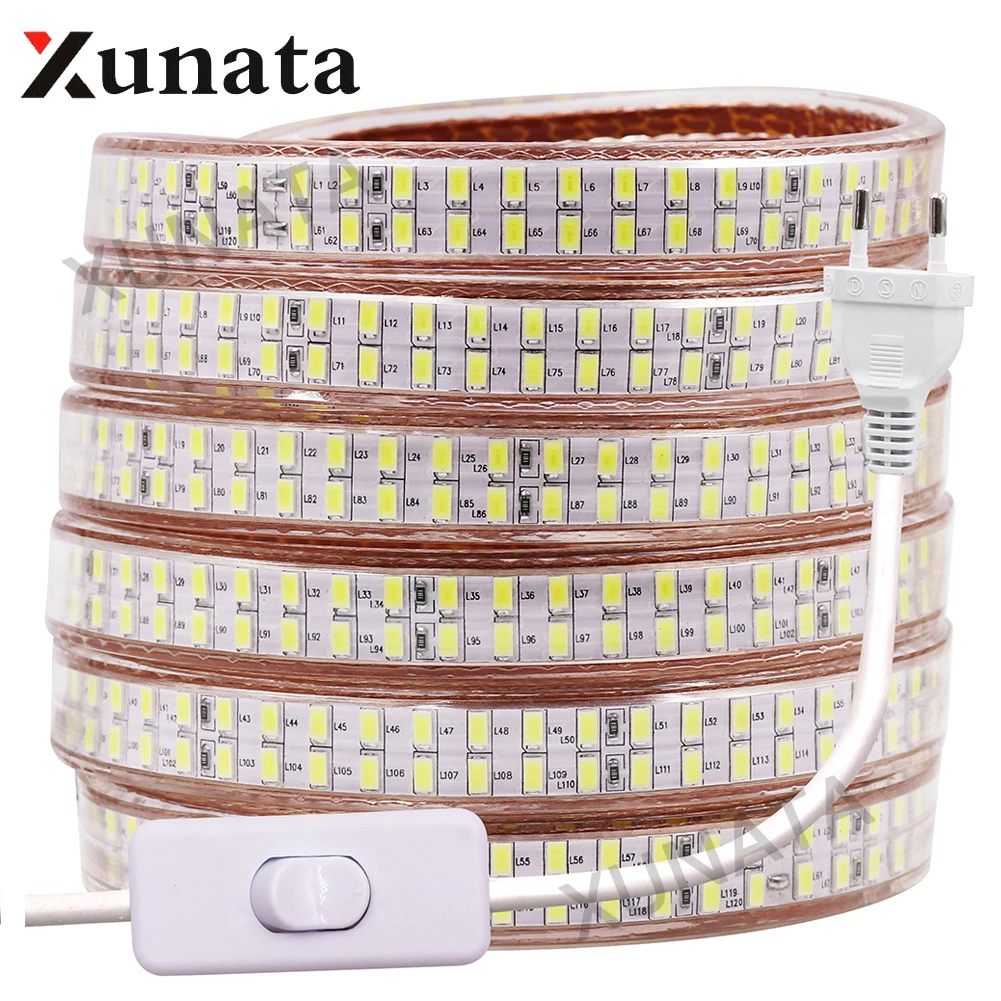 Goede Koop EU US UK 110 v 220 v 120 Leds m Dubbele Rij 5730 Led Strip Warm wit Wit Waterdichte Flex Lint Tape LED Streep Met Schakelaar Goedkoop