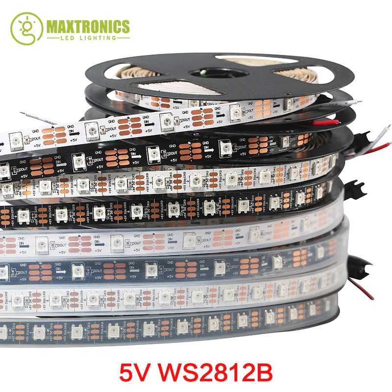 . Beste Kopen 1 m 4 m 5 m WS2812B Smart led pixel strip, Zwart Wit PCB, 30 60 144 leds m WS2812 IC; WS2812B M 30 60 144 pixels, IP30 IP65 DC5V Goedkoop.