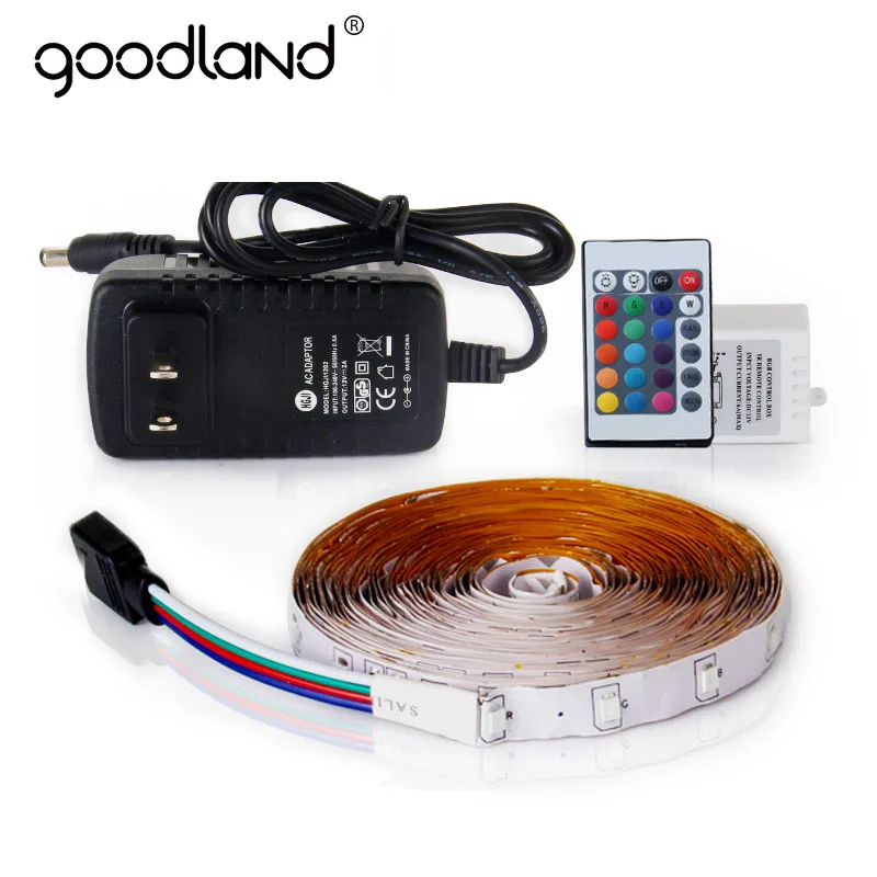 Kopen Goedkoop Goodland RGB LED Strip Licht 2835 SMD 5 M Flexibele Light LED Tape IR Afstandsbediening 12 V 2A Adapter Woondecoratie Lampen Prijs