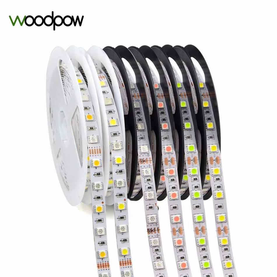 Kopen Goedkoop Woodpow 5 M 5050 SMD LED Strip Licht Tape Hoge Helderheid 60 LEDs M DC 12 V Ice Blauw RGB RGBW Waterdichte Decoratie String Lamp Online