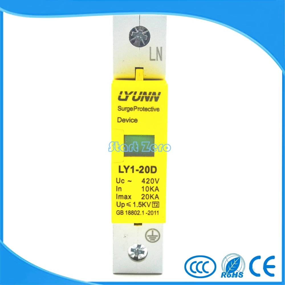 Goede Kopen Hoge kwaliteit SPD 420 v 10KA ~ 20KA Huis Surge Protector Beschermende Low voltage Afleider Apparaat 1 p (1 p + N) Goedkoop