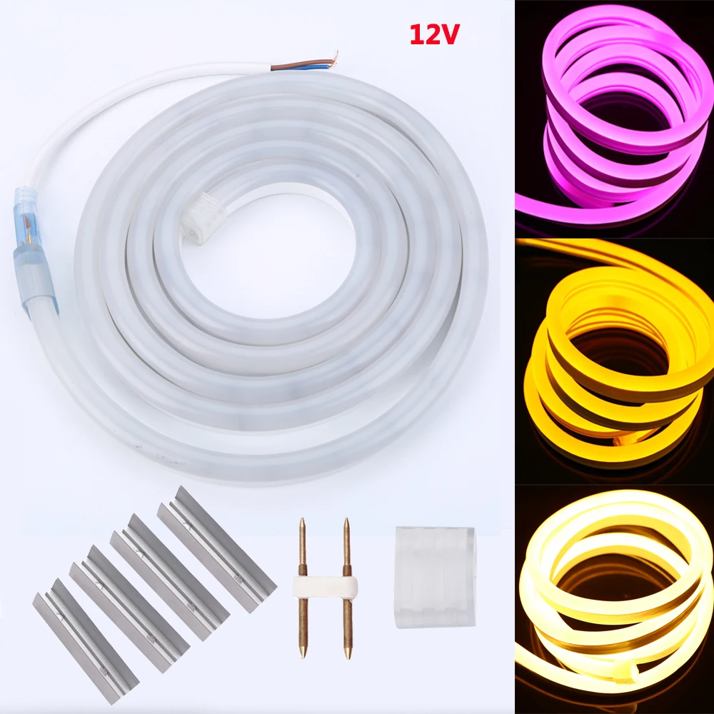 Goede Koop DC 12 V RGB led neon Licht 2835 5050 SMD 120 LEDs m Waterdicht Flex Neon Strip Lint Tape wit warm wit blauw roze rood Clips Goedkoop.