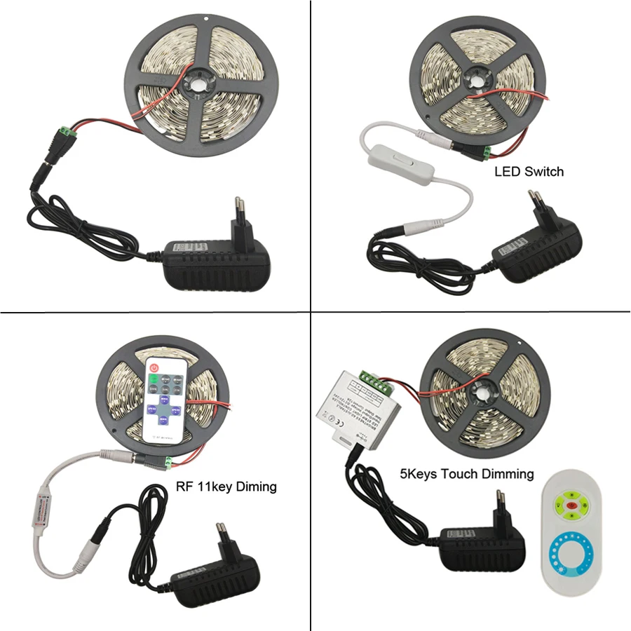 Beste Kopen 5 M 300 Led Strip Wit Warm wit LED Strip Licht Lint 5050SMD Tape Meer Heldere + 2A power voor indoor thuis Decoratieve Goedkoop
