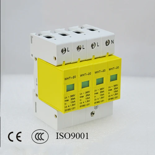 Beste Koop 3 P + N 10KA ~ 20KA D ~ 385VAC Afleider Apparaat SPD Huis Overspanningsbeveiliging apparaat Beschermende Lage voltage Goedkoop