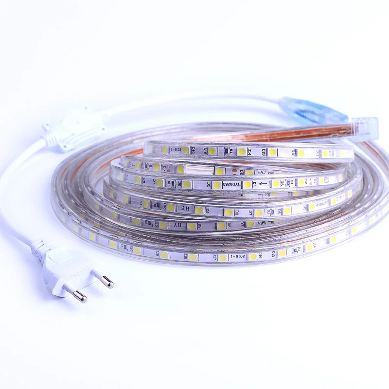 Kopen Goedkoop Waterdichte SMD 5050 AC220V LED Strip Flexibele Light 60 leds m RGB Led Tape LED Licht Met Stekker 1 m 2 m 3 m 5 m 6 m 10 m 15 m 25 m Prijs