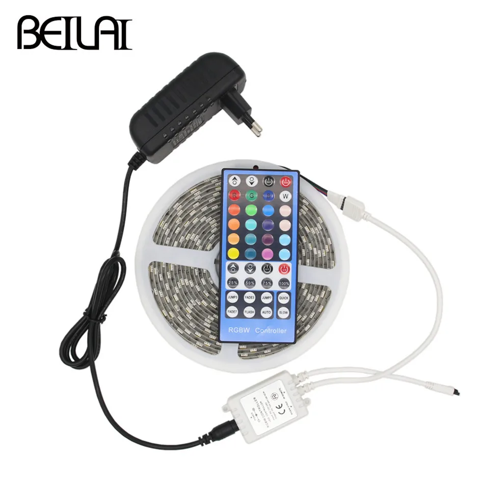 Beste Kopen BEILAI 5050 RGB LED Strip Waterdicht 5 m 300LED DC 12 v RGBWW RGBW LED Licht Strips Flexibele Neon Tape voeg Afstandsbediening en 3A 36 w Power Goedkoop